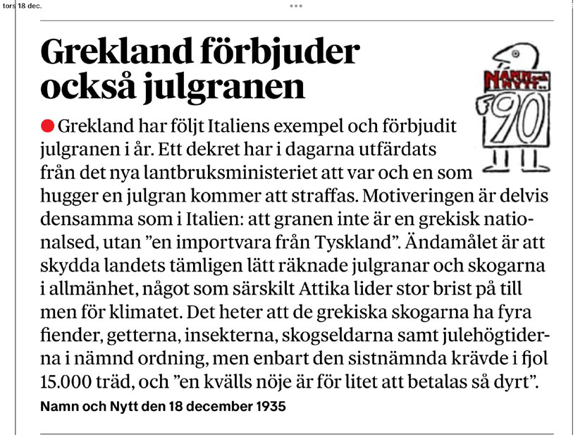 ![]() Klipp i dagens DN som ursprungligen publicerades den 18 december 1935. |