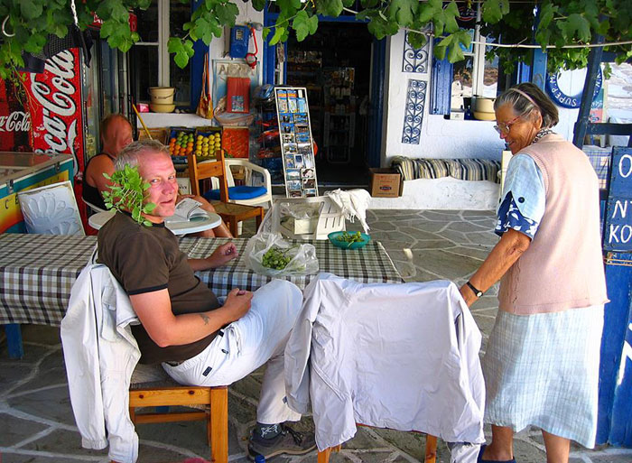 En av sakerna jag gillar med Grekland är alla underbara möten. Jag vet inte hur många gånger jag har träffat vilt främmande människor som behandlat mig som om vi har känt varandra hela livet. För att inte tala om grekernas fantastiska gästfrihet, och deras underbara humor. Här är ett av alla dessa minnesvärda möten.
